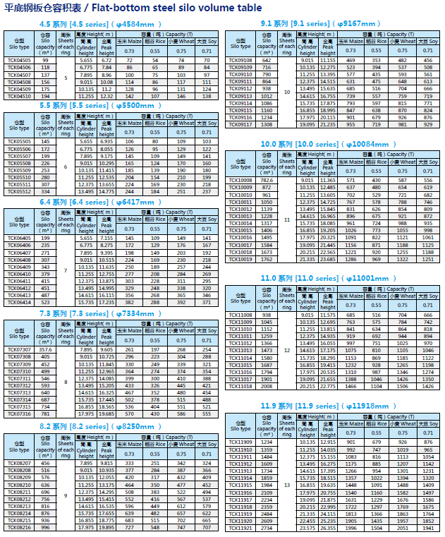 適于儲(chǔ)存糧食、種子、飼料、塑料粒、水泥煤炭及其他顆粒、粉狀物料。用于糧庫、面粉廠、糧米廠、油脂廠、麥芽廠、啤酒廠、港口、農(nóng)場、糧食處理中心、煤礦等單位,作為基層收納倉、暫寸倉、中轉(zhuǎn)倉、原料倉、儲(chǔ)備糧食及其他用途。